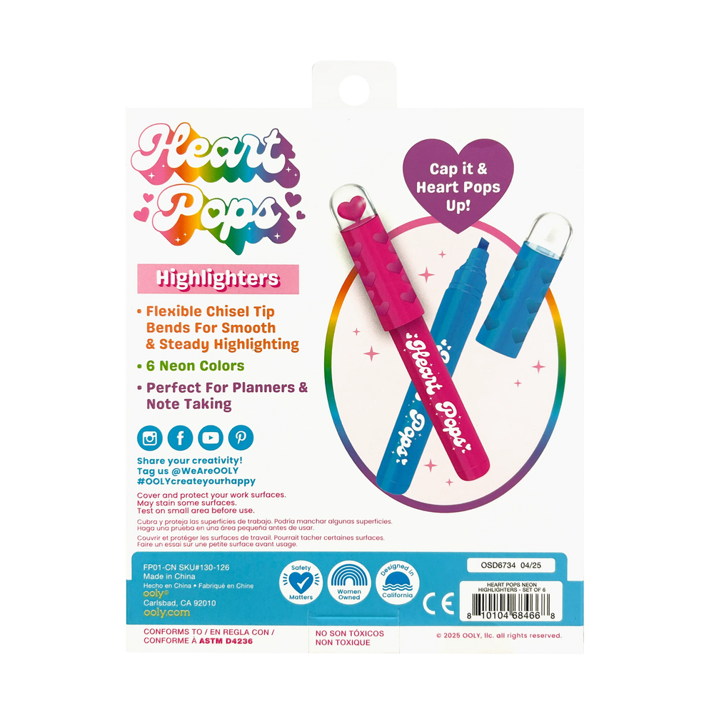 Bring creativity and color to every page with the Heart Pops Neon Highlighters— a delightful blend of function and fun!