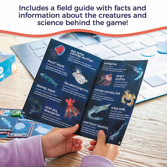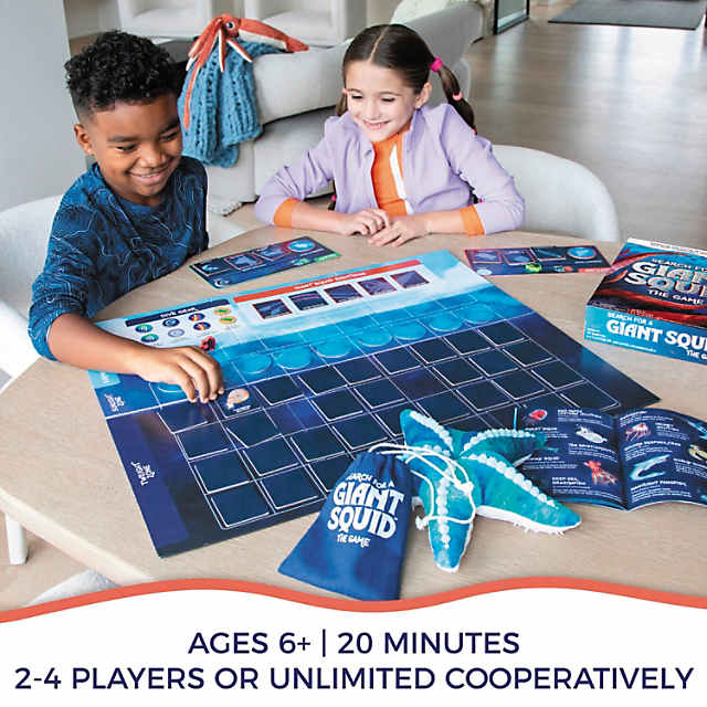 Embark on an underwater adventure like no other! This game sets young explorers on a thrilling quest to find matches, discover hidden marine animals and piece together a mysterious giant squid. Navigate the gameboard using a mix of strategy and memory, looking for matches while encountering fascinating sea creatures and overcoming underwater hazards along the way. Pick the right gear token at the start of each trip or risk encountering an obstacle that sends you right back to the surface to start over. Score victory if you’re the first player to find all the matches on your pilot map or the last matching piece of the mysterious giant squid. Ideal for fostering teamwork, critical thinking and a love for the wonders of the deep sea, this game brings a wave of excitement to your family game nights!